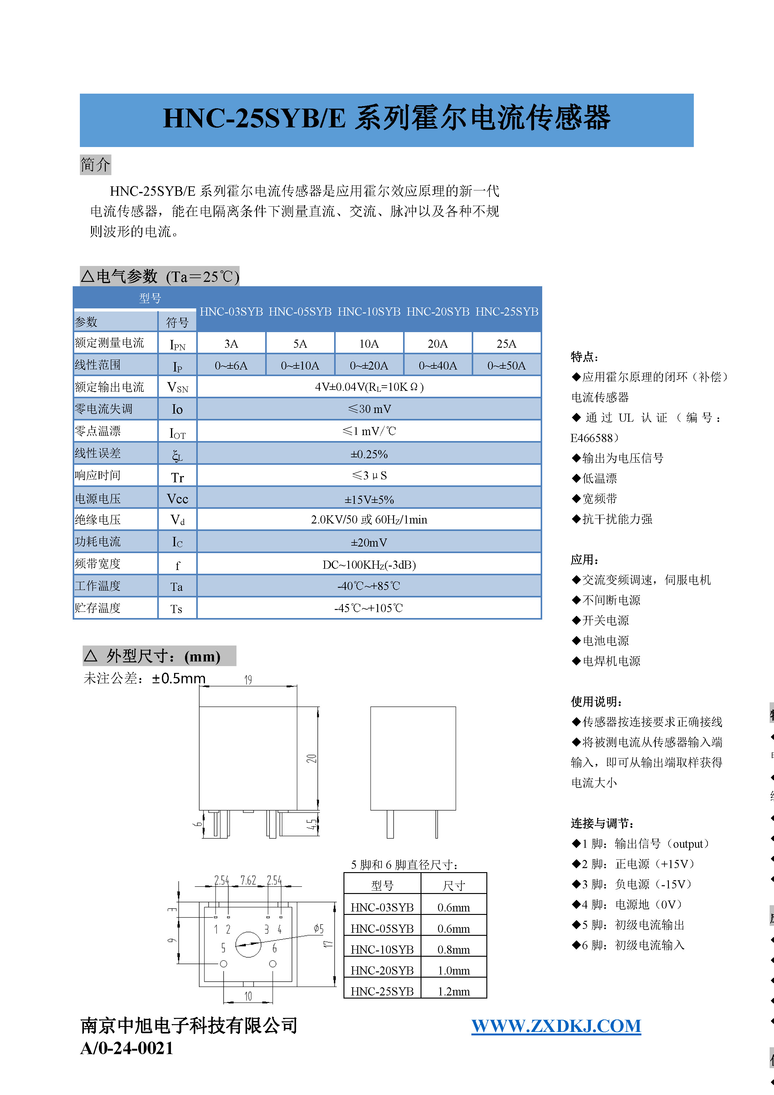 HNC-25SYB系列霍爾電流傳感器是應(yīng)用霍爾效應(yīng)原理的新一代電流傳感器,能在電隔離條件下測量直流、交流、脈沖以及各種不規(guī)則波形的電流。